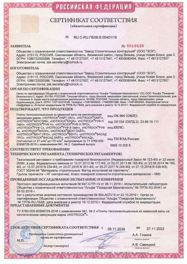 • Группа горючести: НГ (негорючий)